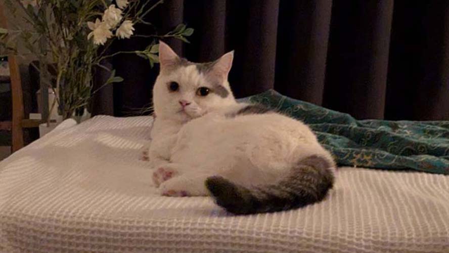 日も暮れて、薄暗くなった部屋で、まんまるお目々でポーズをとってます。 -