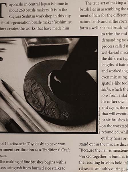 二つ目は、2009年の初夏に、日本航空(JAL)国際線機内誌『SKYWARD』の取材に応じたときに出会った硯の話です。日本の書道文化を特集するとのことで、老舗筆墨店のご主人からの誘いでした。