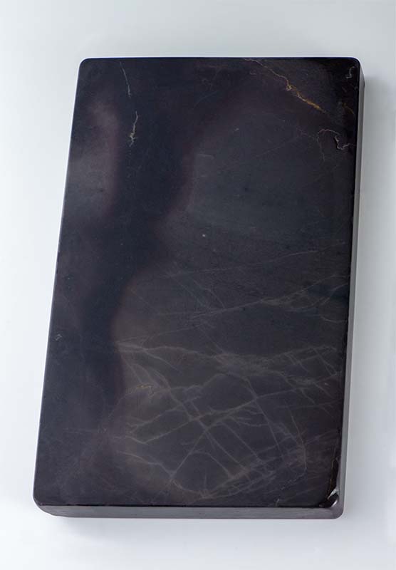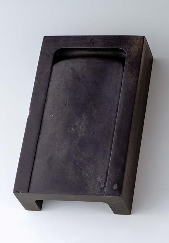 それまで私は、「良質な硯面はそっと撫でると、指の皮膚が引っ張られるような感触がある」という説を信じていました。鋒鋩がよくたっているものほど、皮膚がねっとりと引っ張られるような感触があるのは事実です。その感覚を信じて購入した端渓硯は、もう40年近く、日々愛用する硯の一つとなっています。