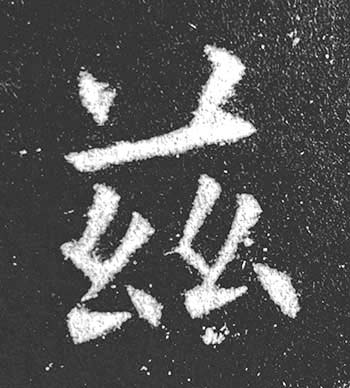 〈糸〉同様に、その1画目は画数で混乱する漢字です。これは、筆写(書写)体と印刷字体のデザインの差異による混乱です。印刷字体、とくに明朝体では1画目が2画に分けてデザインされています。一方、筆写(書写)体ではこれを1画で書くことも、2画で書くこともあります。九成宮醴泉銘では、「…可蠲茲沈痼…」の〈茲〉を見ると、2つ並んだ〈幺〉の初画を、一方は2画で、もう一方は1画で書いています。1画で書くか、2画に分けるかの、ちょうど境界線のような部分です。つまりどちらでも構わないということです。ささいなところに変化をつけた欧陽詢は、さすがに名人ですね。同じ九成宮醴泉銘の〈糸〉(イトヘン)は多く2画に分けて書いているので、欧陽詢も2画の方が書き易かったのかもしれません。