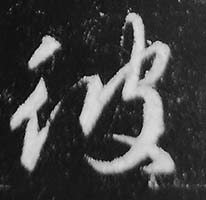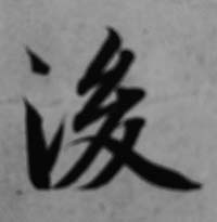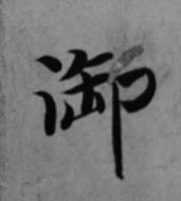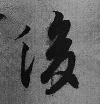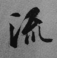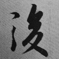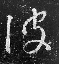 ちなみに草書では縦画一本で彳(ぎょうにんべん)を表し、楷書は言うまでもなく〈彳〉となります。後年、行書の彳(ぎょうにんべん)を誤認して、楷書でも完全に氵(さんずい)で書いた彳(ぎょうにんべん)の漢字に出会うこともあります。
