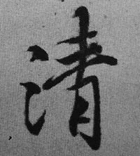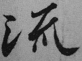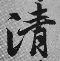 蘭亭序で彳(ぎょうにんべん)は、〈得〉と最終部に〈後〉が2回の計3回登場します。また、氵(さんずい)の漢字は〈清〉と〈流〉がそれぞれ2回、加えて〈激〉〈猯〉〈浪〉と計7回登場します。まずは点画が鮮明な神龍半印本蘭亭序から、それぞれを抜粋します。