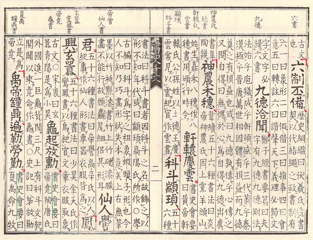 空想はほどほどにして、現実の本書『書史千字文』の注を確認しましょう。『尚書序』と『易』と『包蒙』との三種の文献が引用されています。