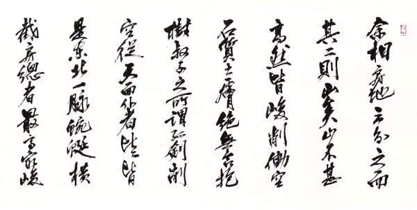 下の句の大きな展開で大画面に負けないかなを志向した作。落款印が安定感を与えている。