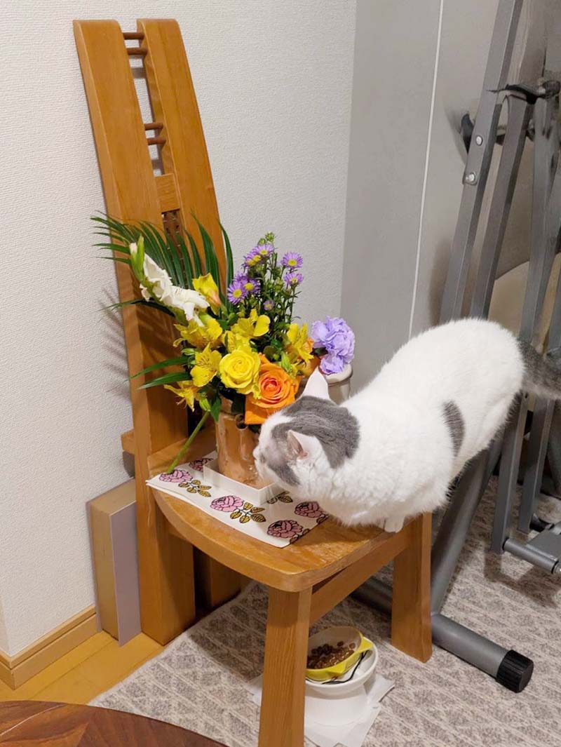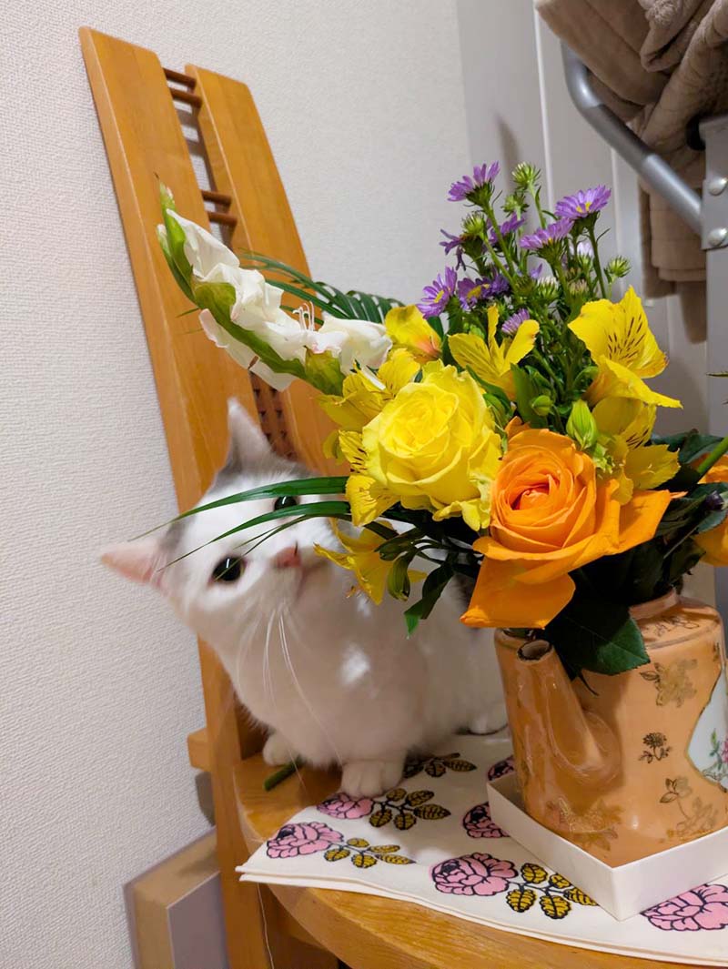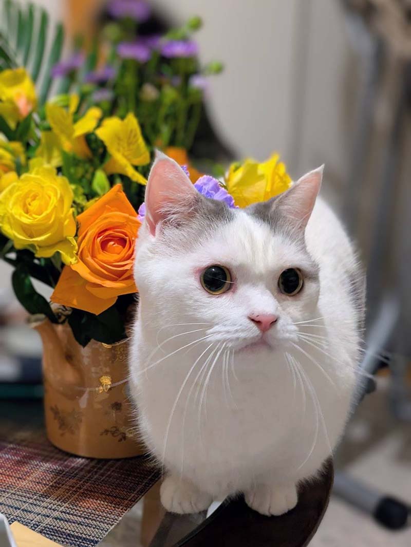 え? お花と一緒に写真を撮るの? 仕方ないなあ。可愛く撮ってね!