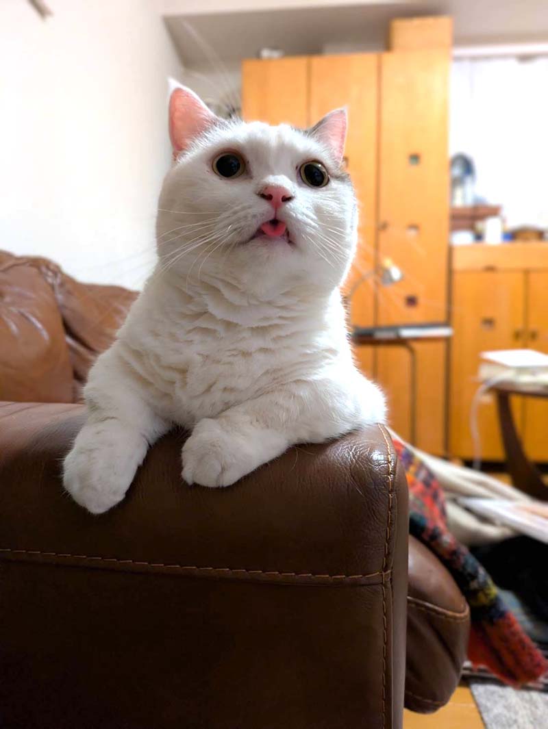 「うっかり者の猫は、時々舌をしまい忘れているので、注意してあげましょう」