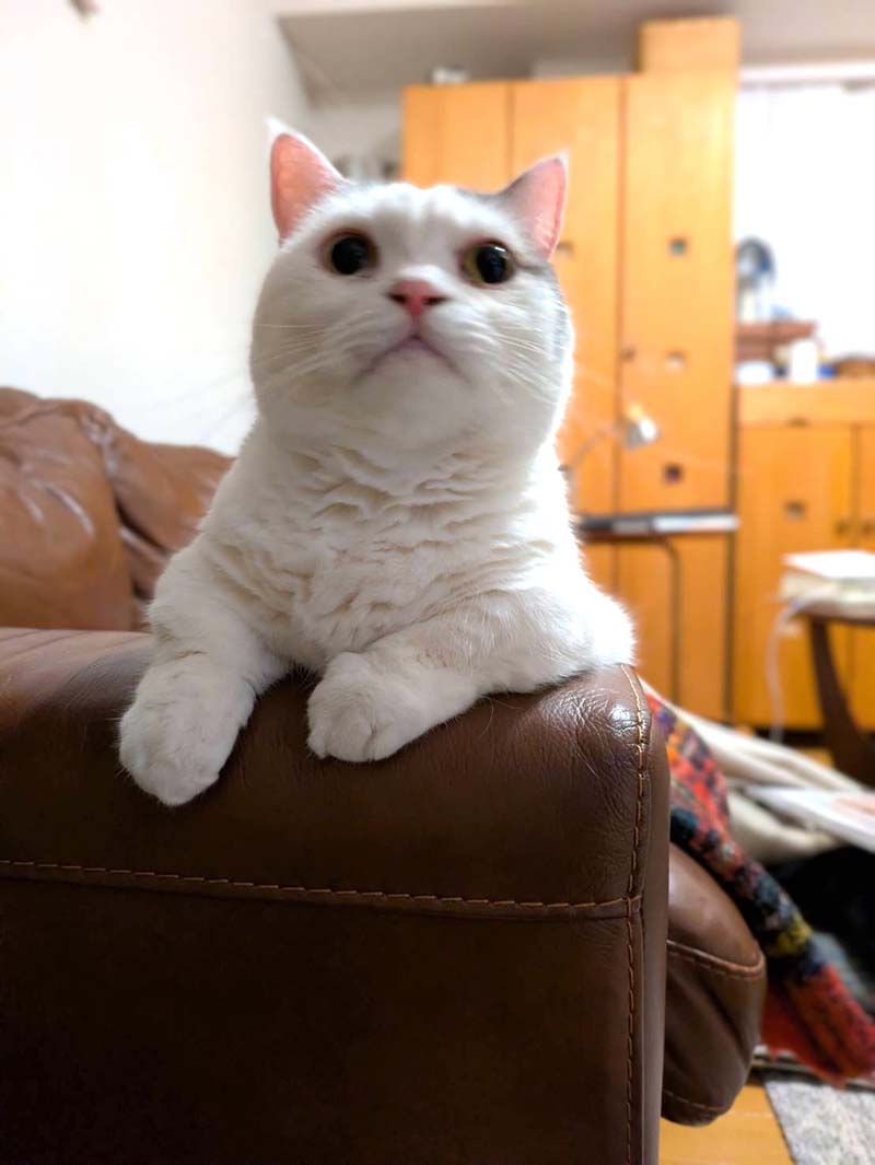 白地に淡墨模様が少しある、游墨舎によく似合う猫。