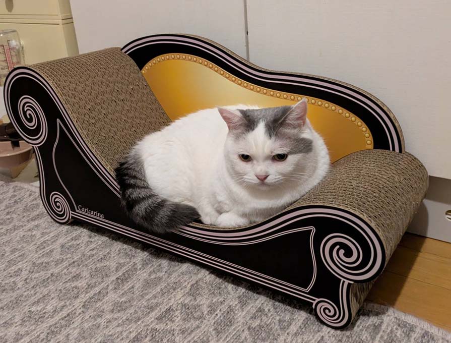 それで、ベーシックサイズのカリカリーナ(ダンボールの爪研ぎできるベッド)が