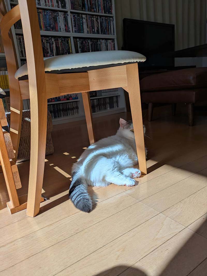 窓際で日差しを浴びながら寝てたら、ほかほかし過ぎて暑くなってきたので、