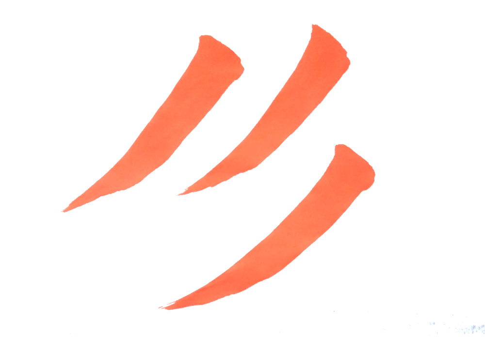 書道の技法を「トメ、ハネ、ハライ」と呼び、なかでもハライは存在感のある部分です。