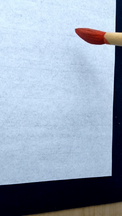 起筆は時計の10時から11時の間あたりに向けて置き、筆の弾力を使って筆毛全体を左側に向けて動かします。