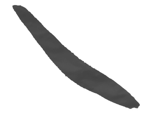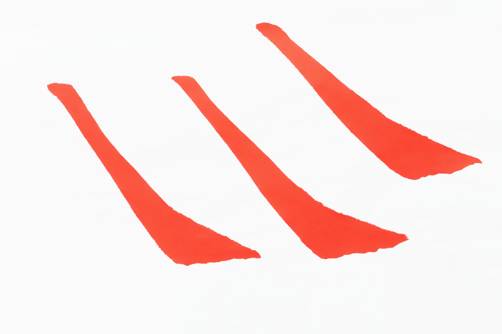 筆毛の3分の1程度の細さから始め、徐々に筆を沈めながら右下方向へ引きます。