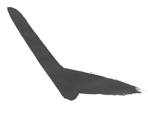 右横へ引き抜くとき上図のAあたりを筆先が通り、そこに意識して筆先をまとめて引き抜くと、赤線の形の右ハライになります。